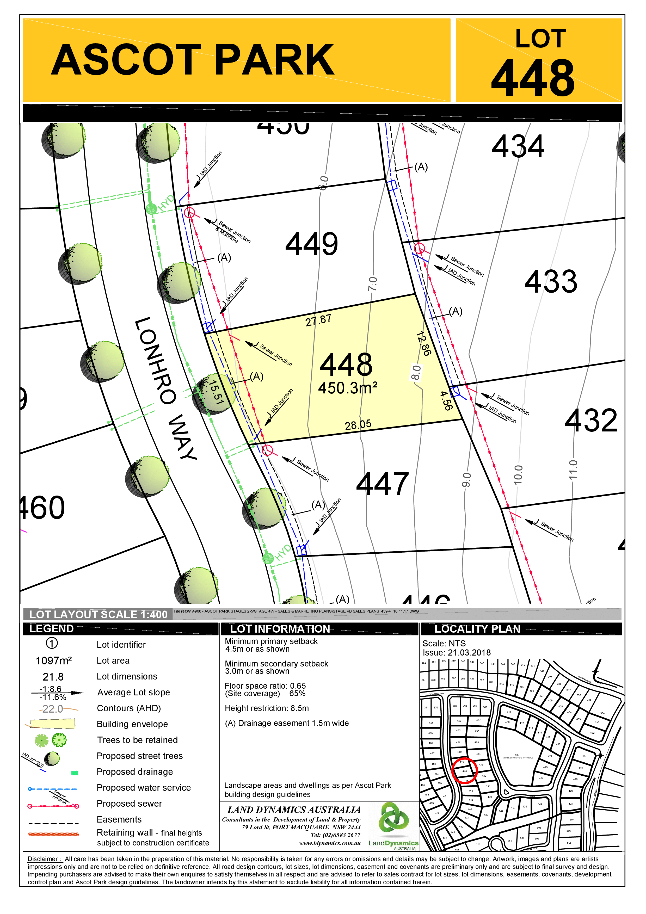 Lot 448 is 450m2 with an 15.5m frontage.
